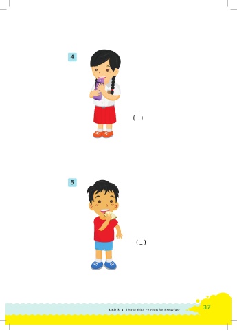 4 ( _ ) 5 ( _ ) 36 Unit 3 • I have fried chicken for breakfast 37