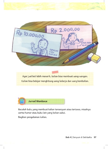 Kalian bisa belajar menghitung uang belanja dan uang kembalian.