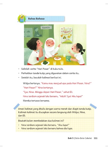 • Perhatikan tanda kutip yang digunakan dalam cerita itu.