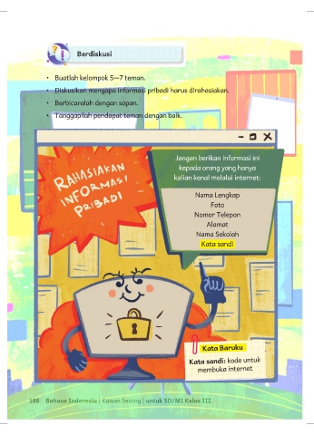 • Diskusikan mengapa informasi pribadi harus dirahasiakan.
