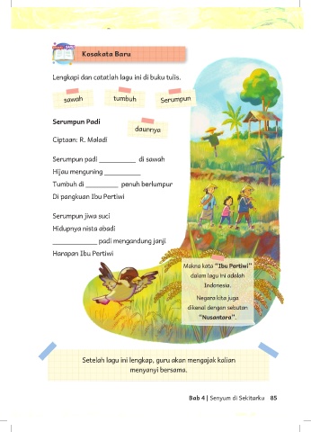 Lengkapi dan catatlah lagu ini di buku tulis.