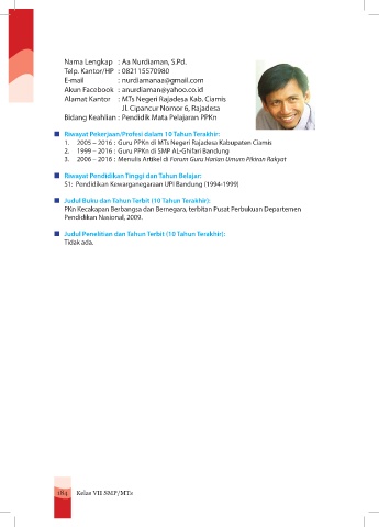 1. 2005 – 2016 : Guru PPKn di MTs Negeri Rajadesa Kabupaten Ciamis