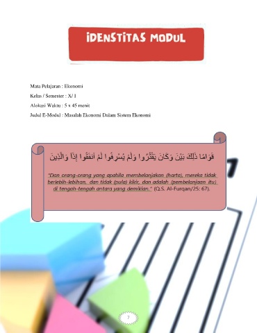 IDENSTITAS MODUL Mata Pelajaran : Ekonomi Kelas / Semester : X/ I Alokasi Waktu : 5 x 45 menit Judul E-Modul : Masalah Ekonomi Dalam Sistem Ekonomi 7