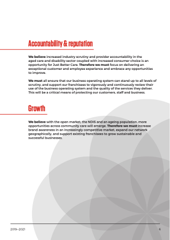 aged care and disability sector coupled with increased consumer choice is an opportunity for Just Better Care. Therefore we must focus on delivering an exceptional customer and employee experience and embrace any opportunities to improve.