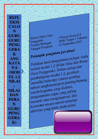 REFL EKSI CALO N GURU GURU PENG GERA K ANG KATA N 6 (MOD UL 1.2 NILAI - NILAI DAN PERA N GURU PENG GERA K)