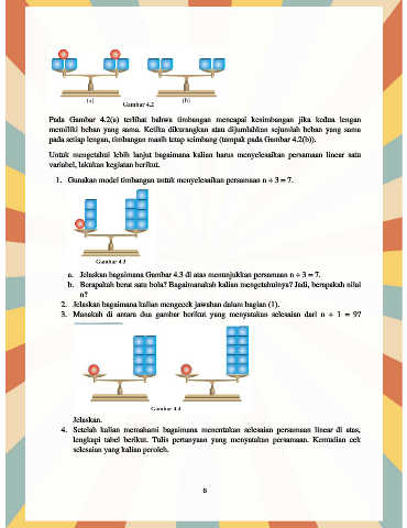 a. Jelaskan bagaimana Gambar 4.3 di atas menunjukkan persamaan n + 3 = 7.