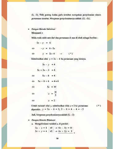 persamaan tersebut. Himpunan penyelesaiannya adalah {(2, –2)}.
