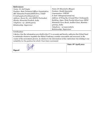 I declare that the information provided in this CV is accurate and hereby authorize the Global Fund