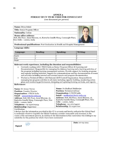 FORMAT OF CV TO BE USED FOR CONSULTANT