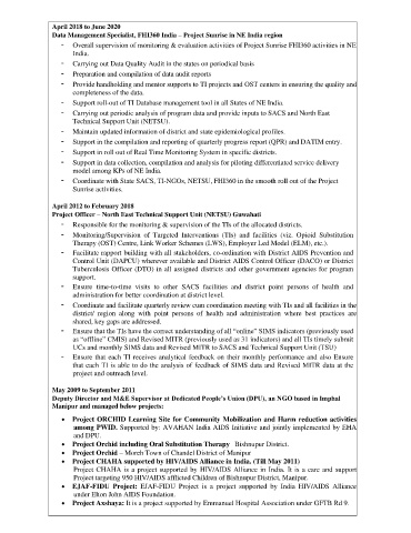 - Overall supervision of monitoring & evaluation activities of Project Sunrise FHI360 activities in NE
