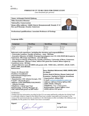 I declare that the information provided in this CV is accurate and hereby authorize the Global Fund