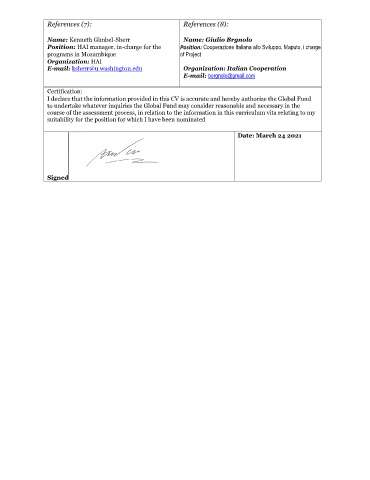 I declare that the information provided in this CV is accurate and hereby authorize the Global Fund