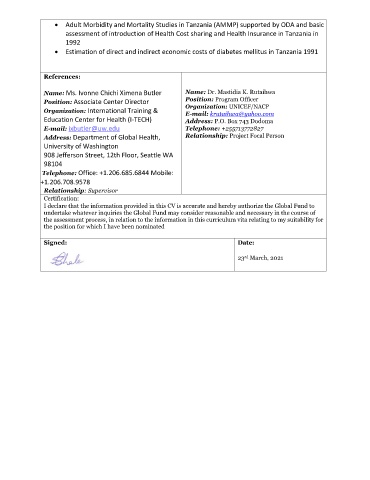 Name: Ms. Ivonne Chichi Ximena Butler Name: Dr. Mastidia K. Rutaihwa