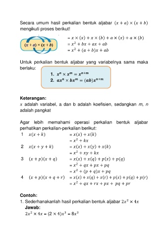 Secara umum hasil perkalian bentuk aljabar ( ) ( )