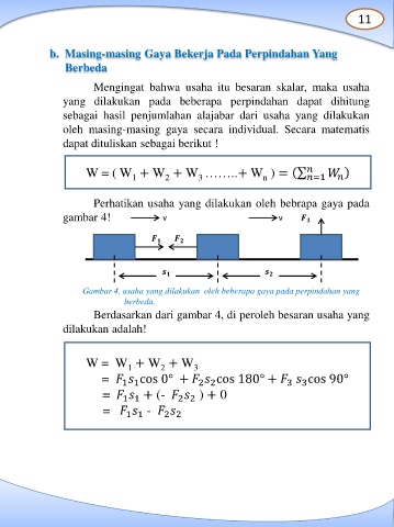 Gambar 4. usaha yang dilakukan oleh beberapa gaya pada perpindahan yang
