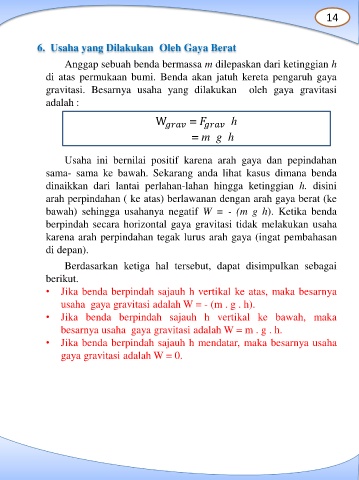 gravitasi. Besarnya usaha yang dilakukan oleh gaya gravitasi