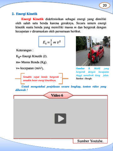Energi Kinetik didefenisikan sebagai energi yang dimiliki