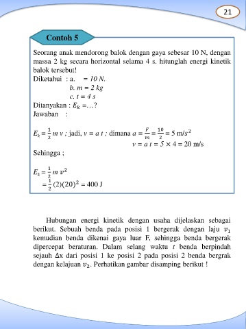 Seorang anak mendorong balok dengan gaya sebesar 10 N, dengan