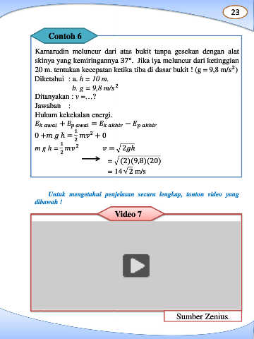 skinya yang kemiringannya 37°. Jika iya meluncur dari ketinggian