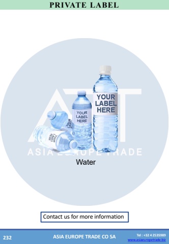 Tel : +32 4 2535989www.asiaeuropetrade.bizASIA EUROPE TRADE CO SAPRIVATELABELContact us for moreinformationWater232