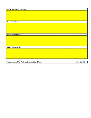 Title V - Rural and Low-Income $0.00 Dependent Care $0.00 School Improvement $0.00 Other Federal Funds $0.00 Total Amount of ALL Federal, State, and Local Funds $1,593,218.76