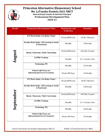 Month Professional Development Titles Meeting Day and Attendees