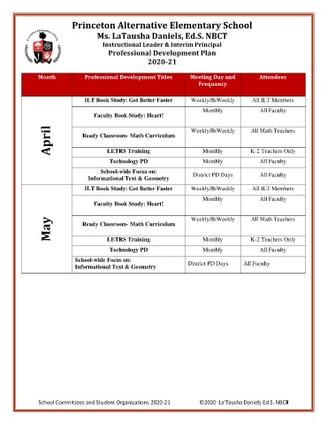 Month Professional Development Titles Meeting Day and Attendees