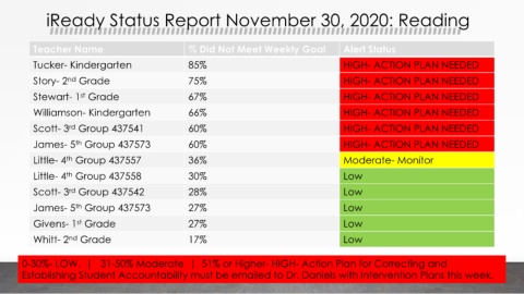 Teacher Name % Did Not Meet Weekly Goal Alert Status