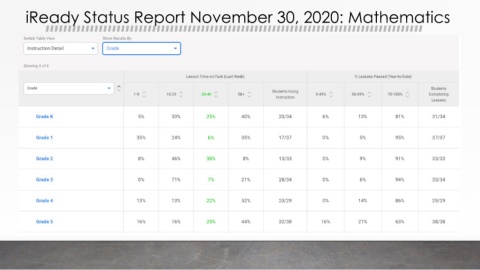 iReady Status Report November 30, 2020: Mathematics