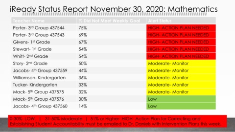 Teacher Name % Did Not Meet Weekly Goal Alert Status