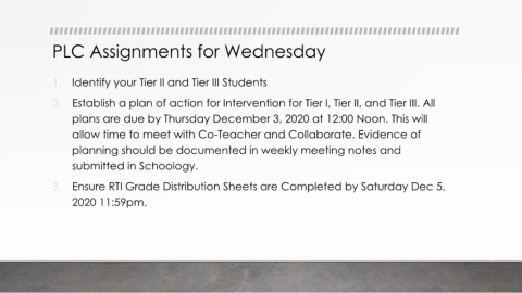 3. Ensure RTI Grade Distribution Sheets are Completed by Saturday Dec 5,