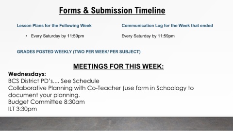 Collaborative Planning with Co-Teacher (use form in Schoology to