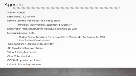 - Student School Readiness Forms complete by Wednesday September 16, 2020