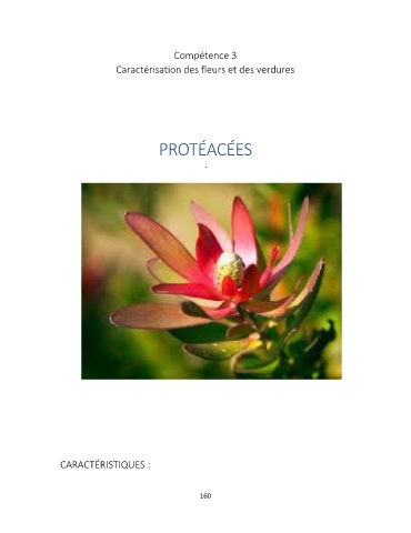 Compétence 3 Caractérisation des fleurs et des verdures PROTÉACÉES . CARACTÉRISTIQUES : 160
