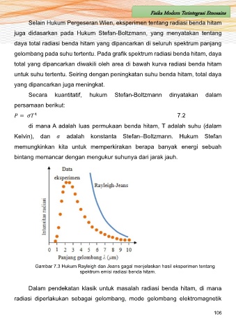 Gambar 7.3 Hukum Rayleigh dan Jeans gagal menjelaskan hasil eksperimen tentang