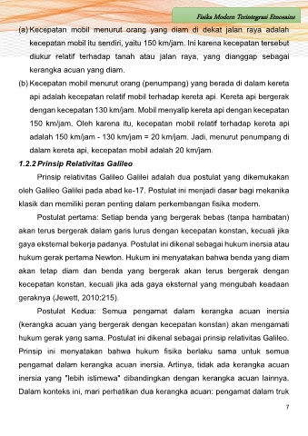 hukum gerak yang sama. Postulat ini dikenal sebagai prinsip relativitas Galileo.
