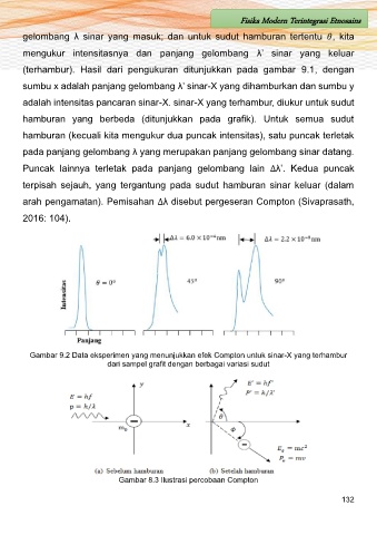 Gambar 9.2 Data eksperimen yang menunjukkan efek Compton untuk sinar-X yang terhambur