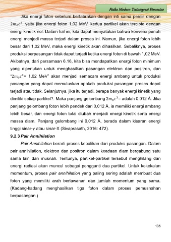 2 , yaitu jika energi foton 1,02 MeV, kedua partikel akan tercipta dengan