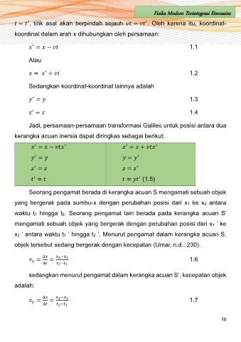 waktu t1 hingga t2. Seorang pengamat lain berada pada kerangka acuan S’