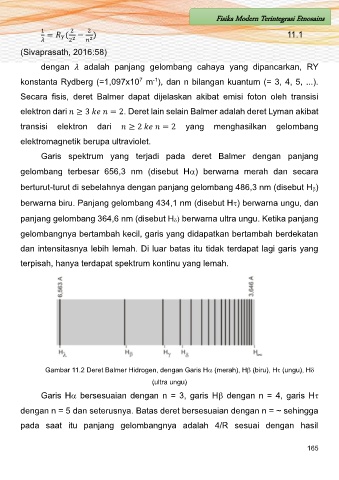 Gambar 11.2 Deret Balmer Hidrogen, dengan Garis H (merah), H (biru), H (ungu), H