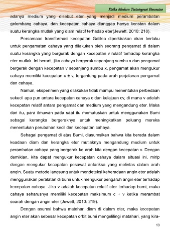 gelombang cahaya, dan kecepatan cahaya dianggap hanya konstan dalam