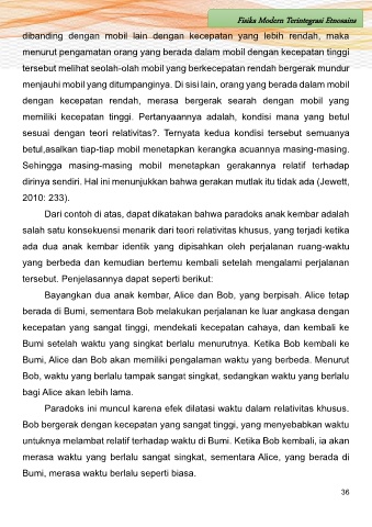 untuknya melambat relatif terhadap waktu di Bumi. Ketika Bob kembali, ia akan
