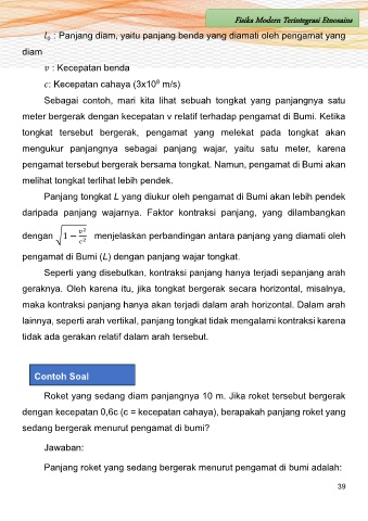 Panjang roket yang sedang bergerak menurut pengamat di bumi adalah: