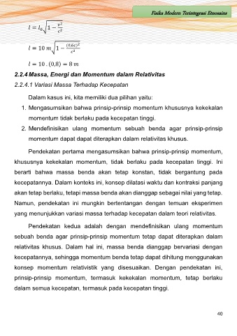 relativitas khusus. Dalam hal ini, massa benda dianggap bervariasi dengan