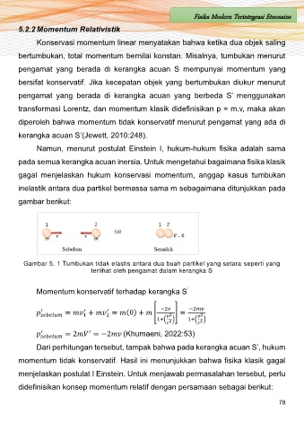 pengamat yang berada di kerangka acuan S mempunyai momentum yang