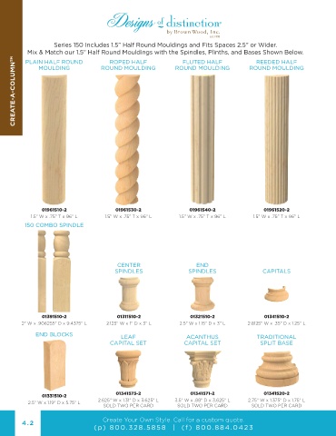 Mix & Match our 1.5” Half Round Mouldings with the Spindles, Plinths, and Bases Shown Below.