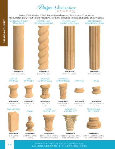 Mix & Match our 2” Half Round Mouldings with the Spindles, Plinths, and Bases Shown Below.
