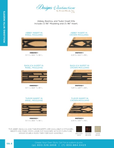 THE ABBEY, BASILICA AND TUDOR INSERTS ARE AVAILABLE IN 3 FINISHES.