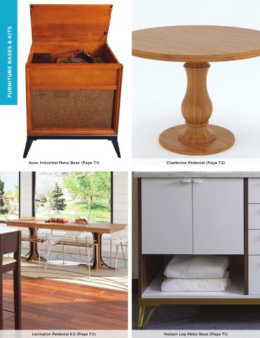 FURNITURE BASES & KITS Apex Industrial Metal Base (Page 7.1) Charleston Pedestal (Page 7.2) Lexington Pedestal Kit (Page 7.2) Hairpin Leg Metal Base (Page 7.1)