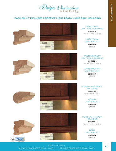 EACH 8ft KIT INCLUDES 1 PIECE OF LIGHT READY LIGHT RAIL® MOULDING. LIGHTING KITS